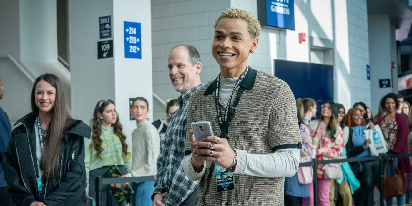 ‘Smile 2’ follows Skye Riley (Naomi Scott), who is about to embark on a world tour. Skye’s previous tour was canceled because of a tragic car accident that left her injured and killed her boyfriend (Ray Nicholson). Unfortunately, the chronic pain from those injuries is not Skye’s only problem. She is also infected by the smile entity from the first film. Once the entity has latched on, the host has no more than seven days before they meet a violent death. As Skye’s mental health deteriorates, her mother/momager, Elizabeth (DeWitt), and devoted assistant, Joshua (Gutierrez-Riley), find themselves torn between caring for Skye and ensuring that the show goes on.